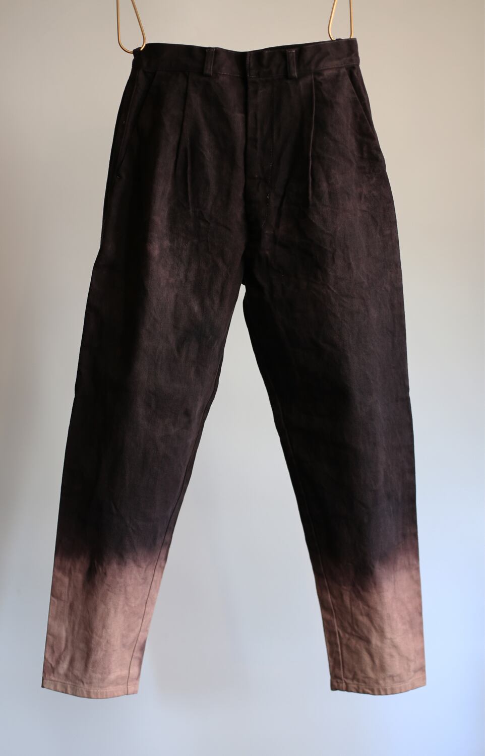 深い股上とフロントに入れたタックにより腰回りはゆったりしているが