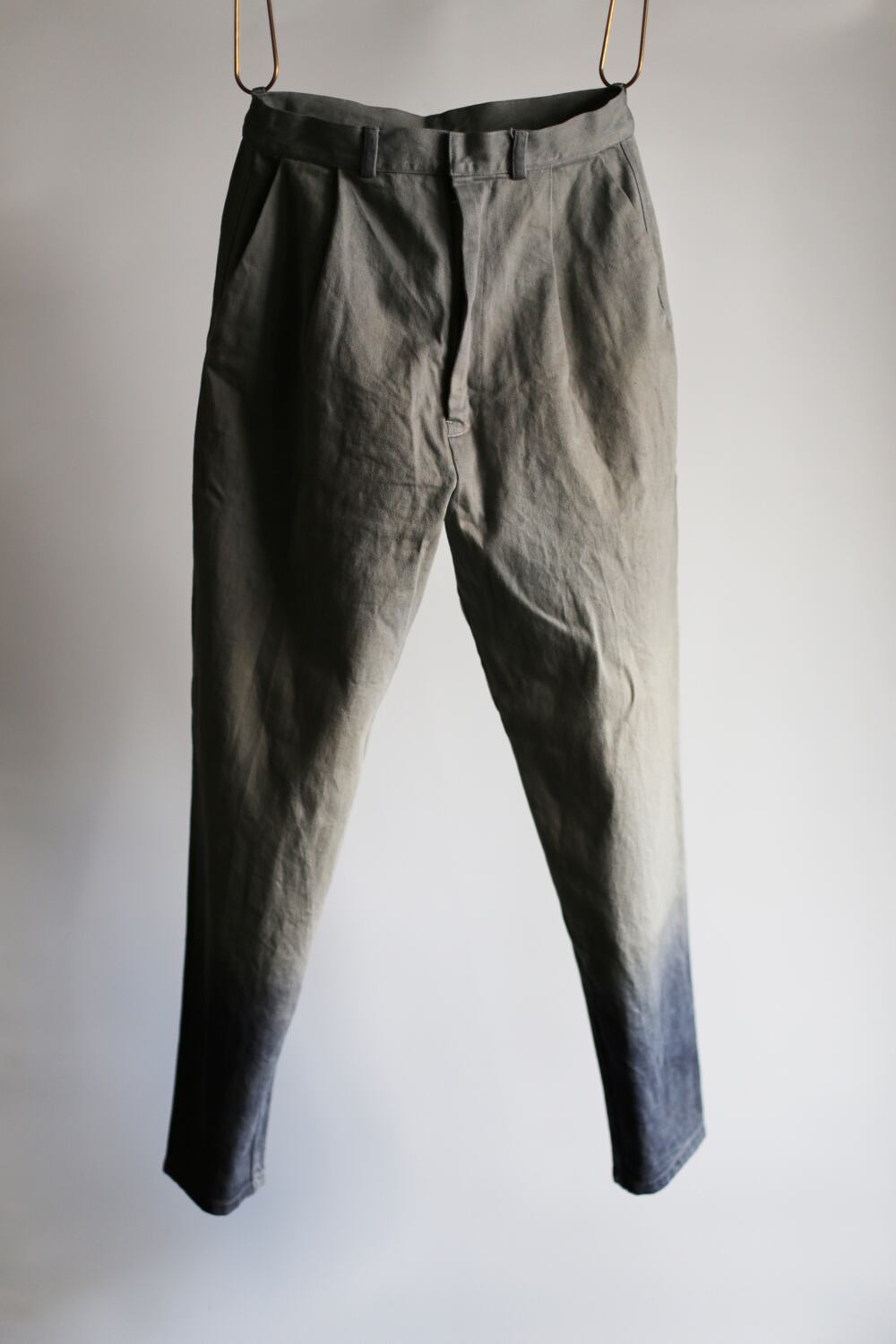 深い股上とフロントに入れたタックにより腰回りはゆったりしているが