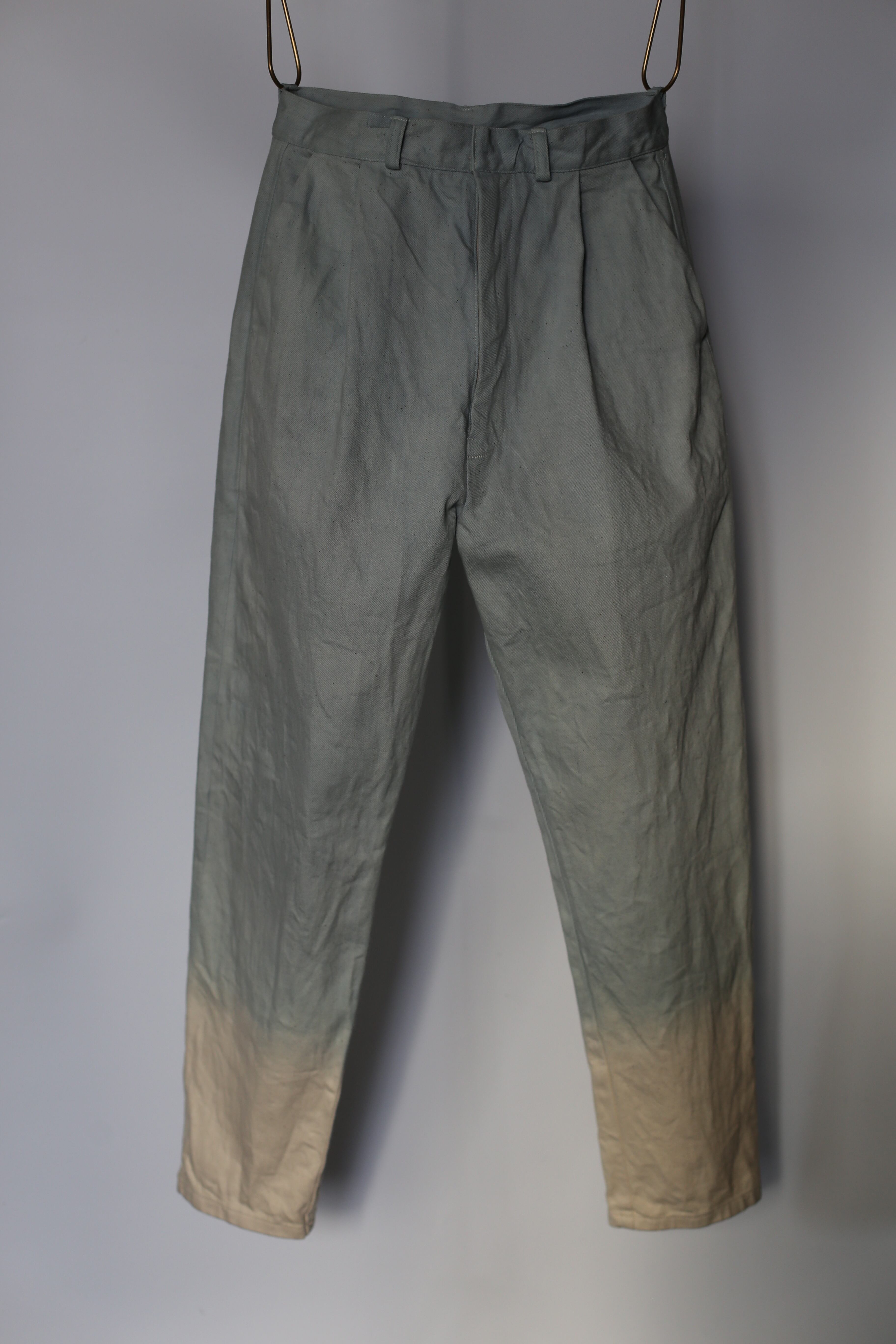 深い股上とフロントに入れたタックにより腰回りはゆったりしているが